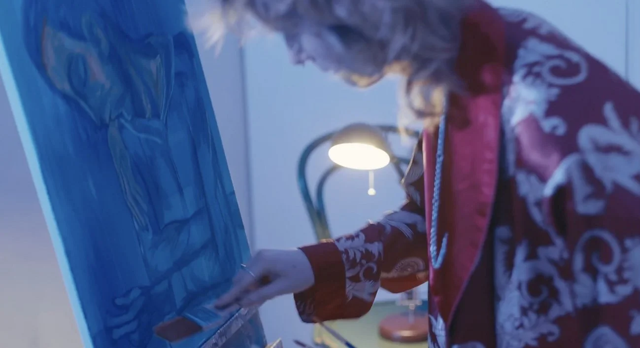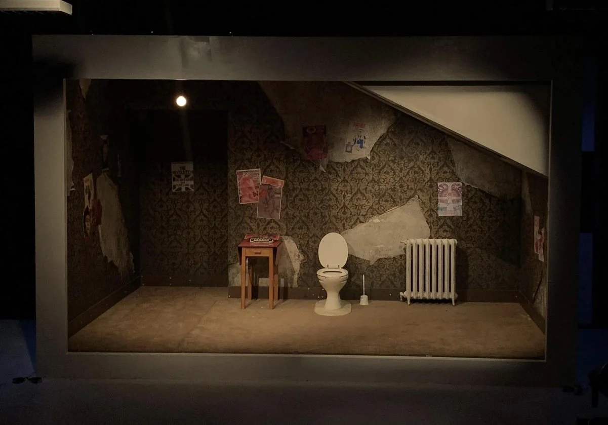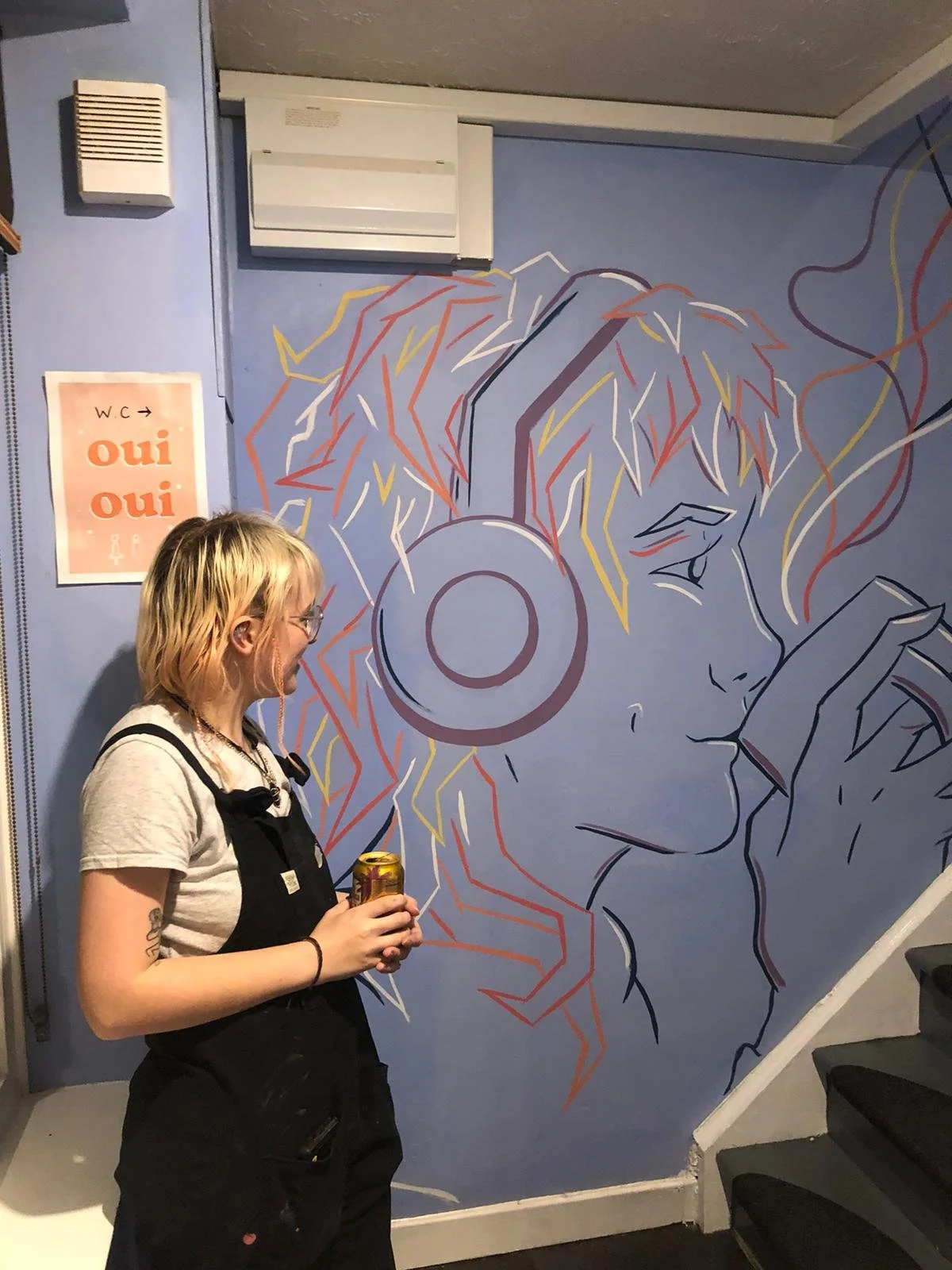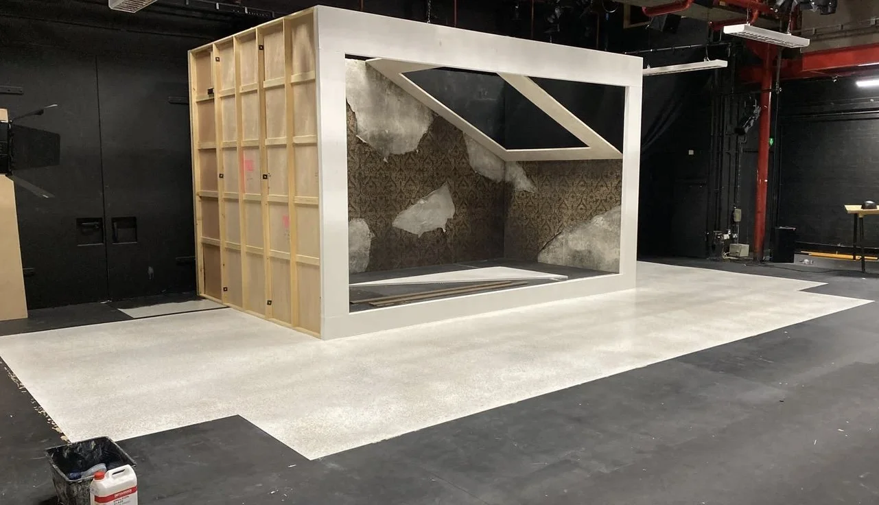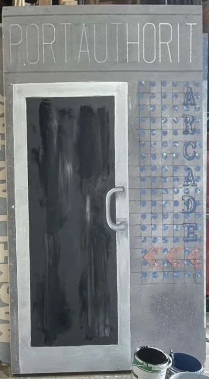 Paintcall in progress - screen printed wallpaper, aged faux plaster and white exterior