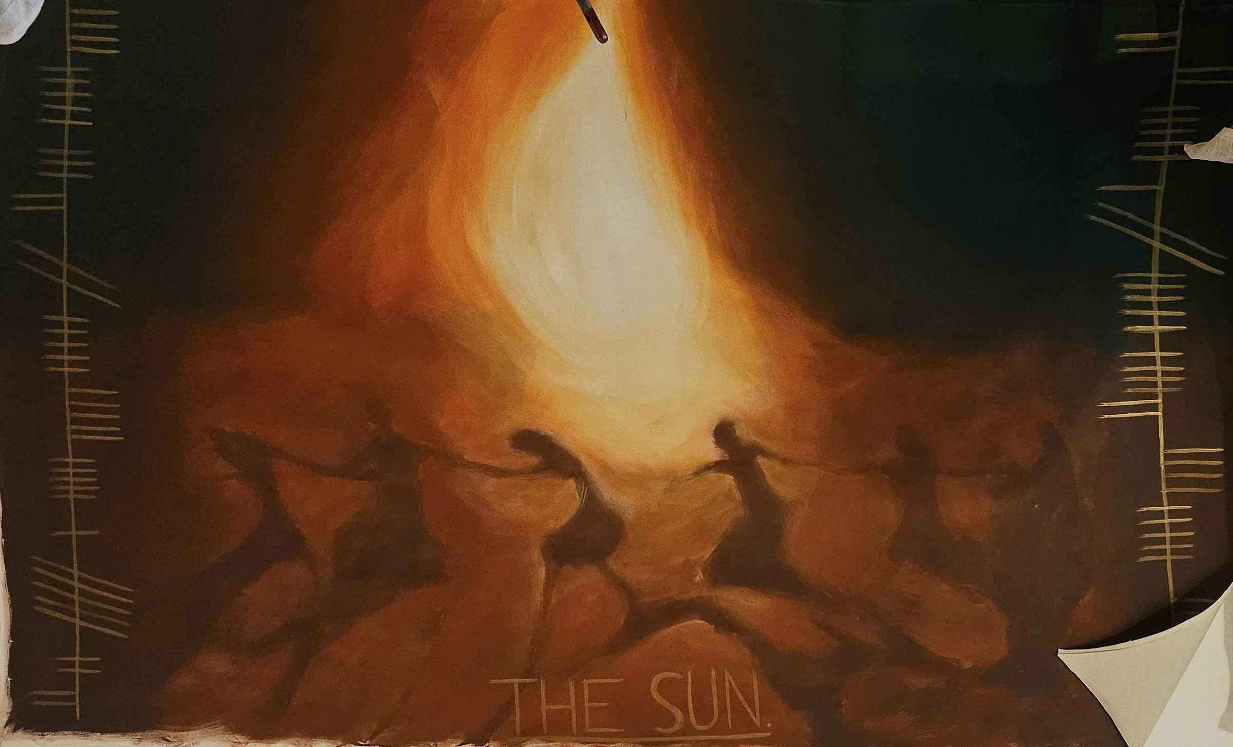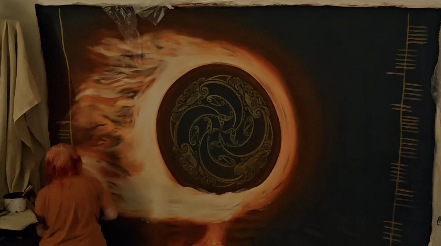 Irish Litha tradition cloth in situ - designed and painted by myself