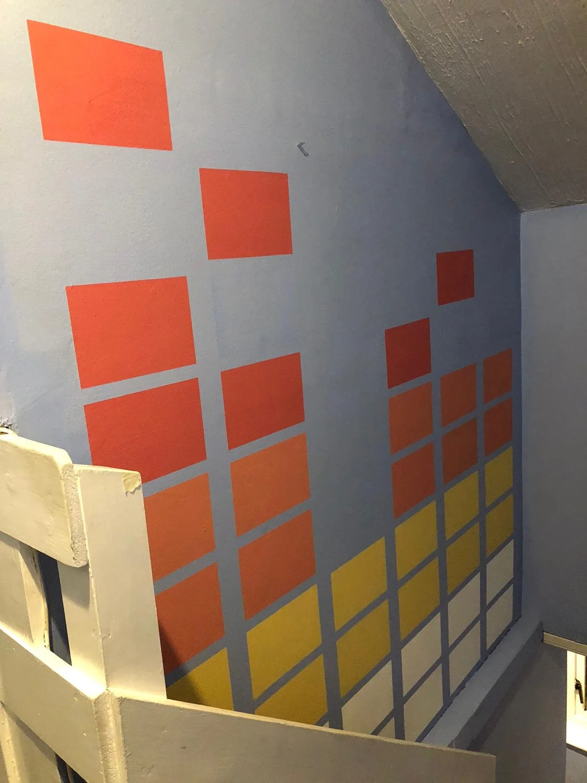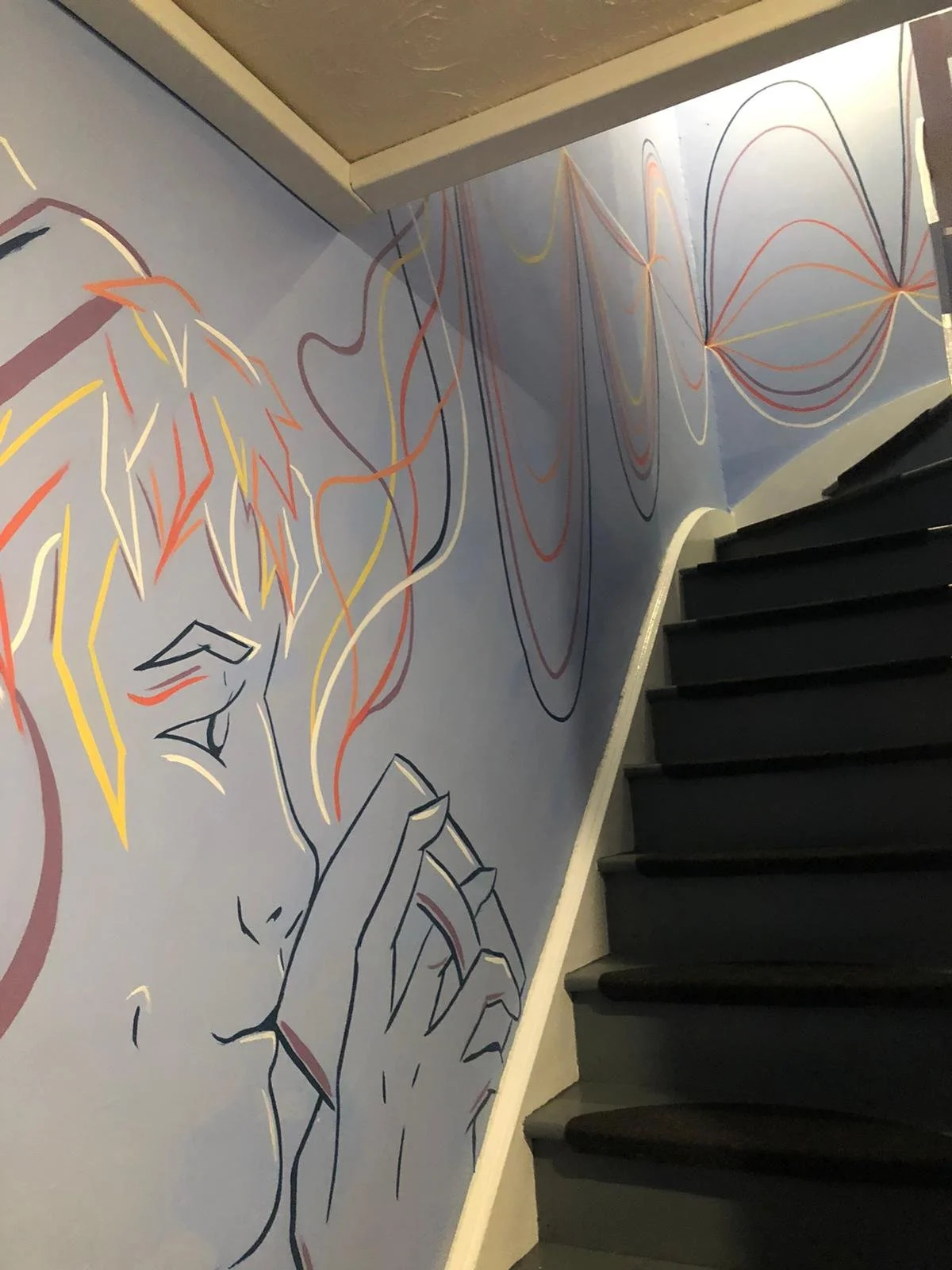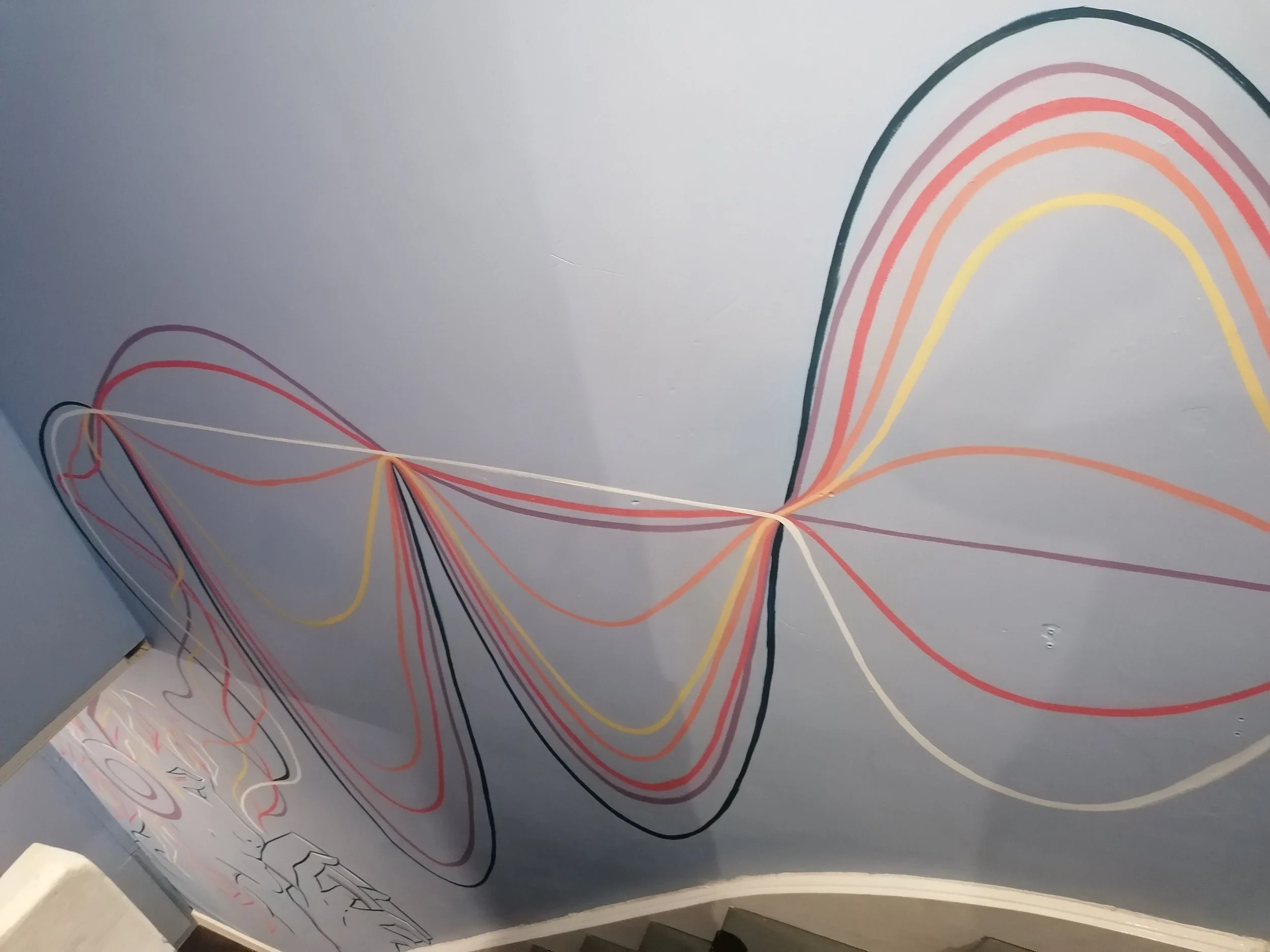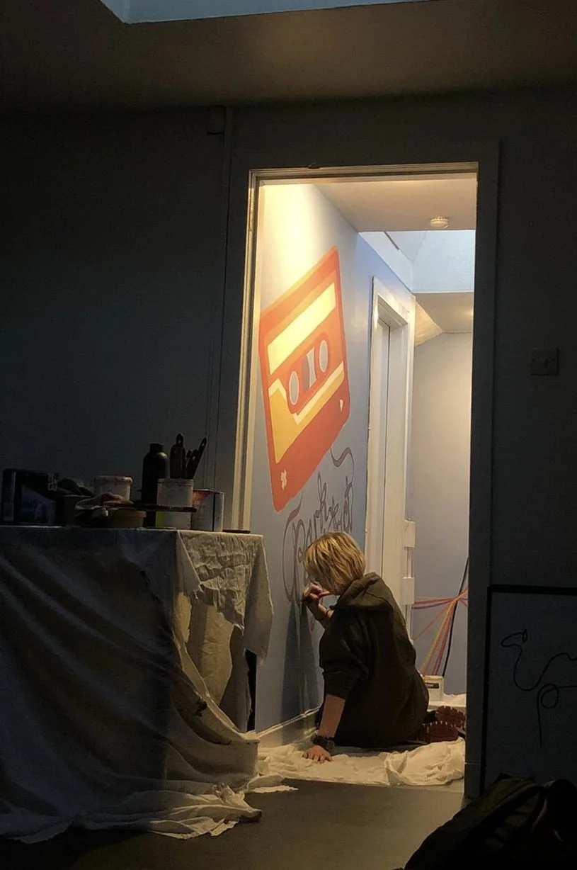 Park District CafeYou can find this mural in the stairwell of Park District Cafe in the Kelvingrove area of Glasgow. It consists of a self portrait, 2 equalisers and a tape designed and painted by myself.